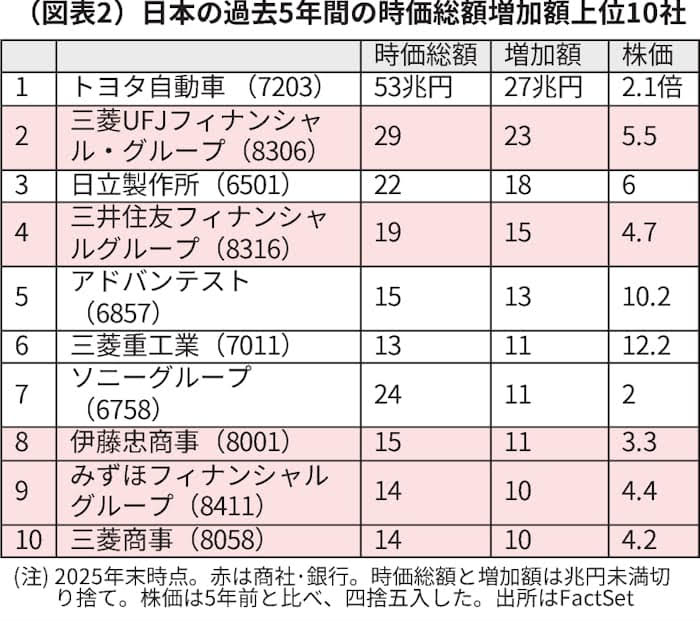また、米国は金利低下でグロース株優位だが、日本は金利引き上げでバリュー株優位となろう。株価純資産倍率(PBR)は米国の4.7倍と比較し、日本は1.6倍と低い(25年末時点)。相場のテーマは「低PBRの修正」であり、その中核がメガバンクと商社である。かつては「商社、冬の時代」と言われ、メガバンクはマイナス金利に苦しんだ時期が長かった。