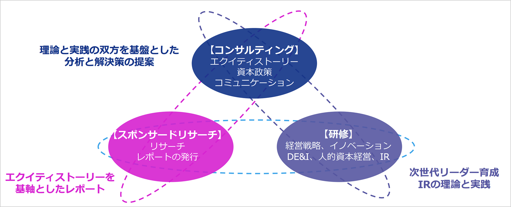エクイティストーリーや資本政策等に関するコンサルティング、リサーチレポートの発行、研修の組み合わせにより企業価値向上に向けた多角的なアプローチを行います。