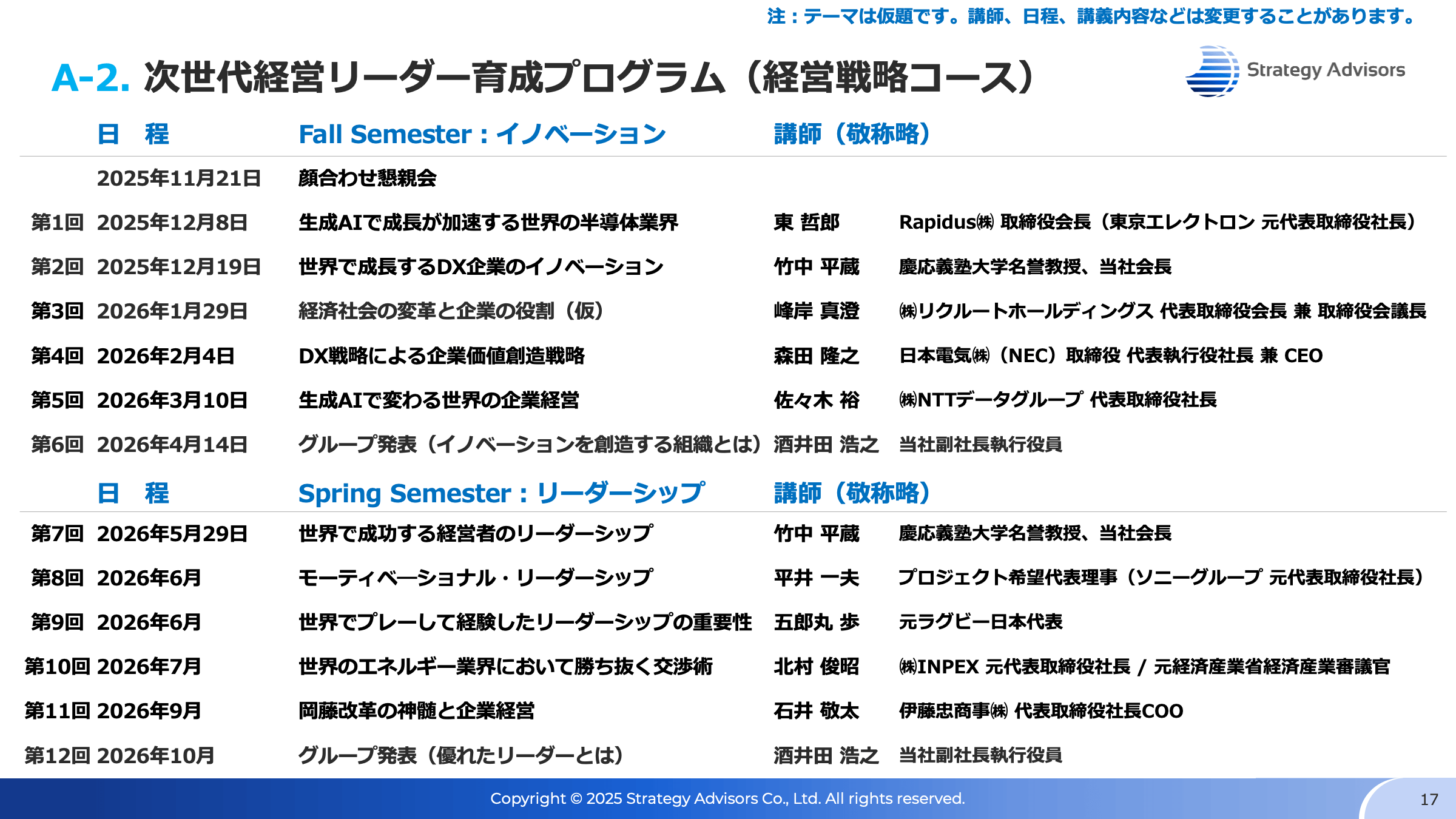 - 【A-2コース】次世代経営リーダー育成総合プログラム 経営戦略コース