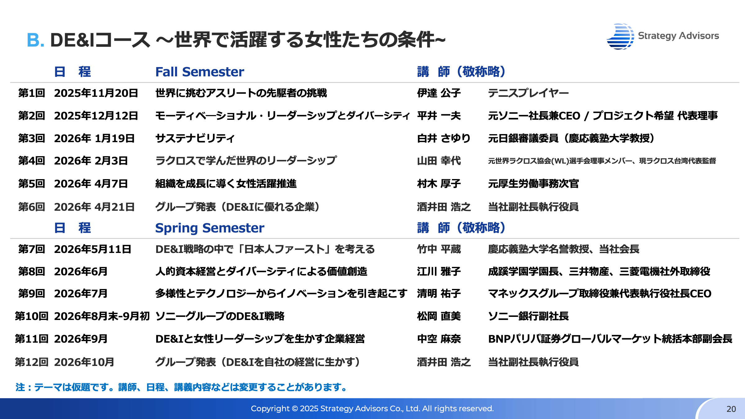 - 第7~11回は、DE&Iに詳しい民間企業の経営者(あるいは経験者)をお招きします。